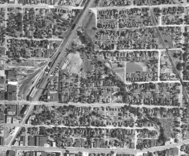 While trying to locate the Wabash depot in the photo, I discovered that Lauhoff Grain Co. bought a lot of houses. It appears that it not only bought houses to expand, but if someone complained about the smell, they bought those houses as well. (The depot was in