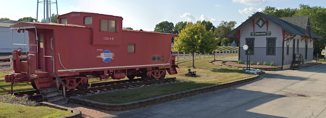 Dennis DeBruler: On Google Earth, the depot and caboose show up between Apr 1998 and Mar 2002.