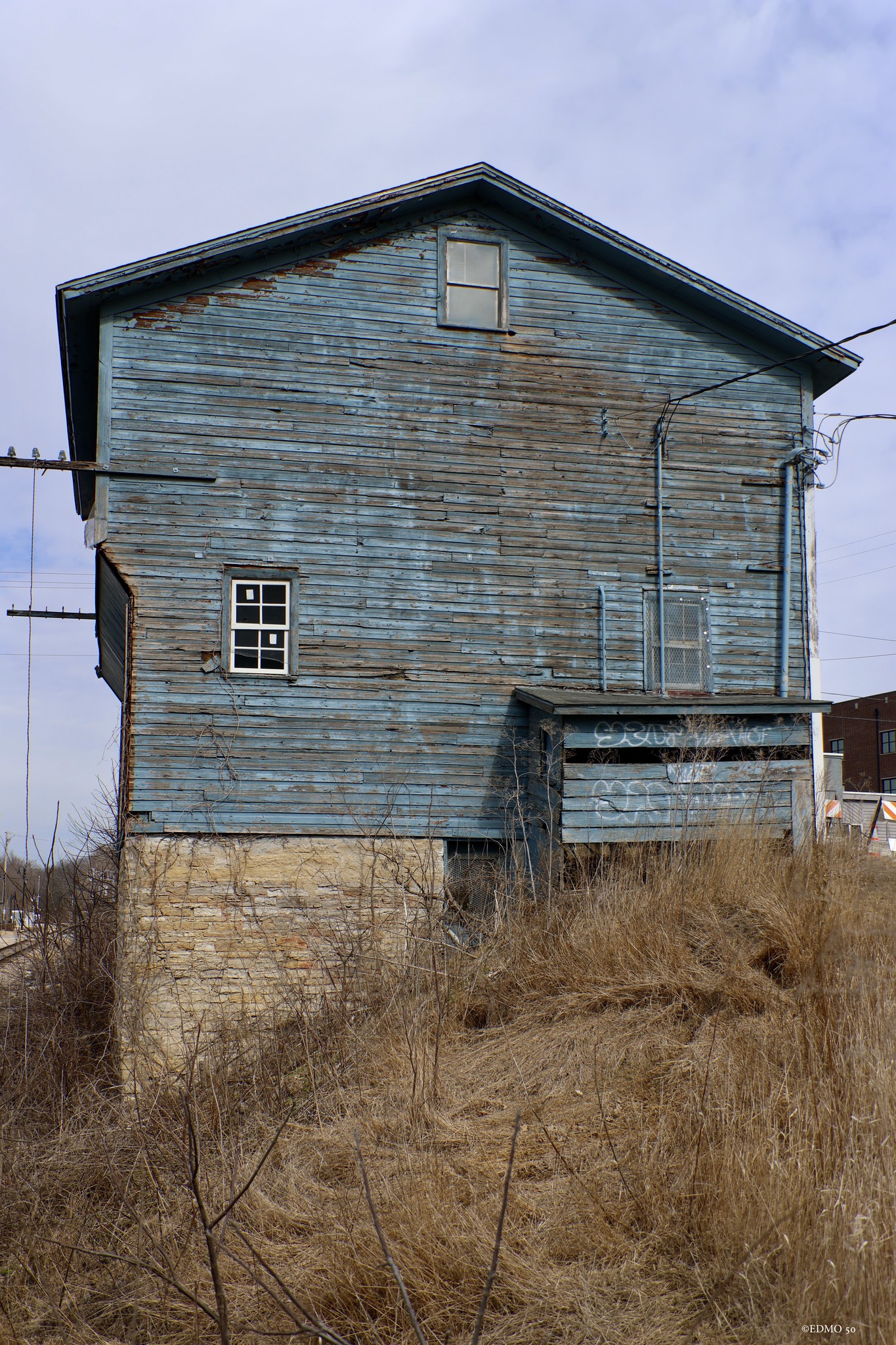 Illinois Railway tracks through town to see if I could find some old railroad-oriented buildings. I'm glad I took the side trip because I found two former grain elevators and probably a warehouse. I was focused on the wood elevator in the middle when I took my photos because it was in pretty good shape considering how old it had to be. It also has a design that I don't remember seeing before.