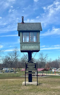 posted three photos with the comment: "Rose Tower controlled the crossing of the Big Four’s Cairo Line and the B&O’s Indianapolis-Springfield, Illinois line at Chrisman, Illinois. The B&O line changed hands several times and at one time was part of the Cincinnati, Hamilton & Dayton, which is why the first photo below is labeled the way it is. The tower stood at the edge of a field in the southwest quadrant of the crossing of the two railroads, and so the photo shows a southbound Big Four passenger train heading toward Paris. A later photo of Rose, as well as an early one of the passenger depot at Chrisman, are also included."